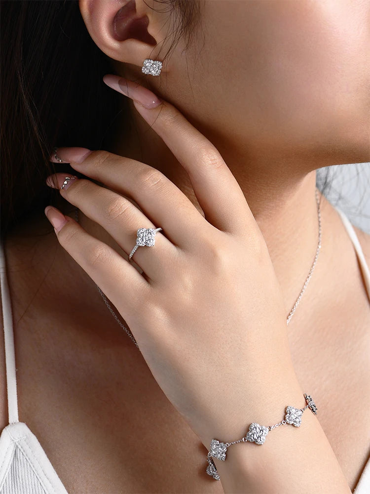 A celebration of light. The Aurelia Chandelier Suite captures the brilliance of moissanite across cascading diamond motifs, sculpted for elegance for evenings of eternal memory.