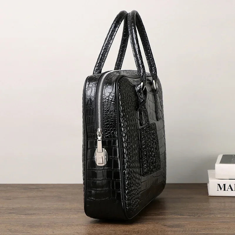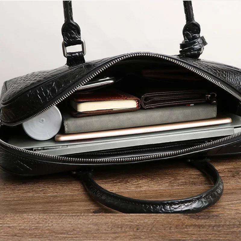 Embossed blue leather in a structured frame. A statement of restraint and quiet distinction.