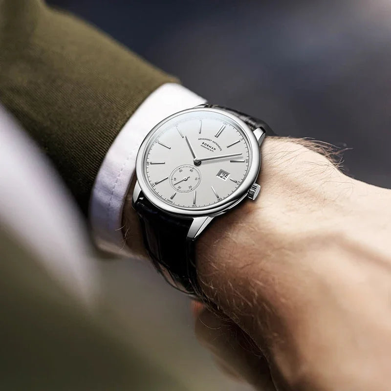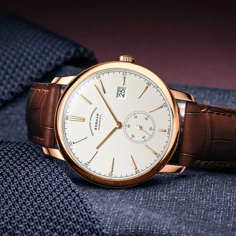 Simplicity becomes power in The Marquis Heritage. Its ivory dial and leather band honor timeless design, understated elegance reborn for the modern heir.
