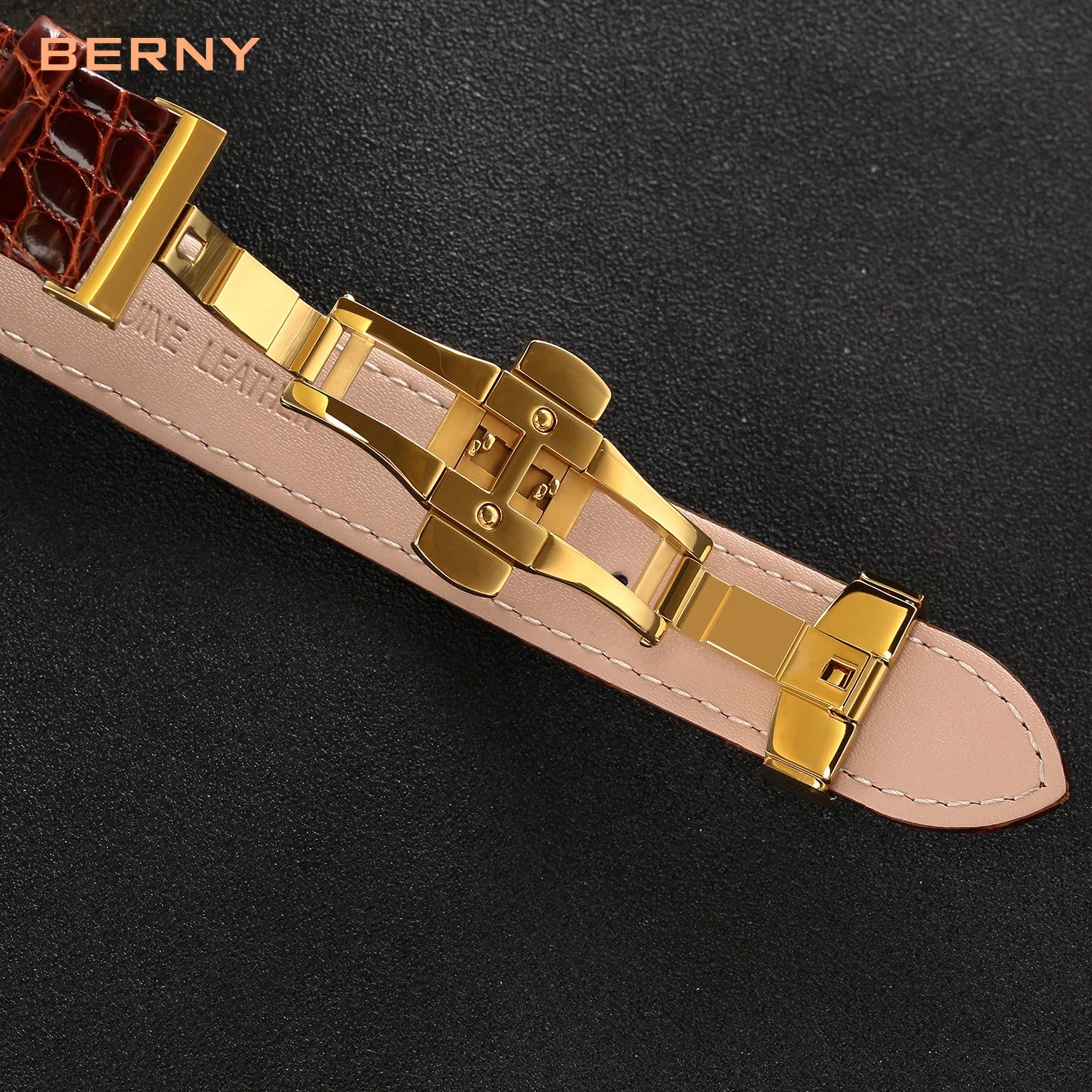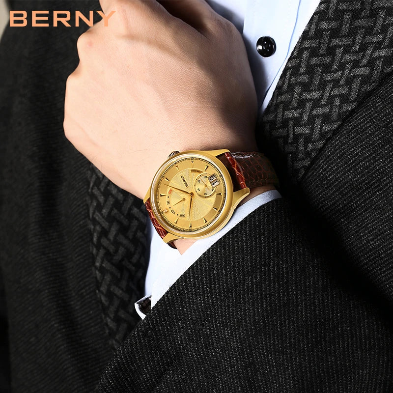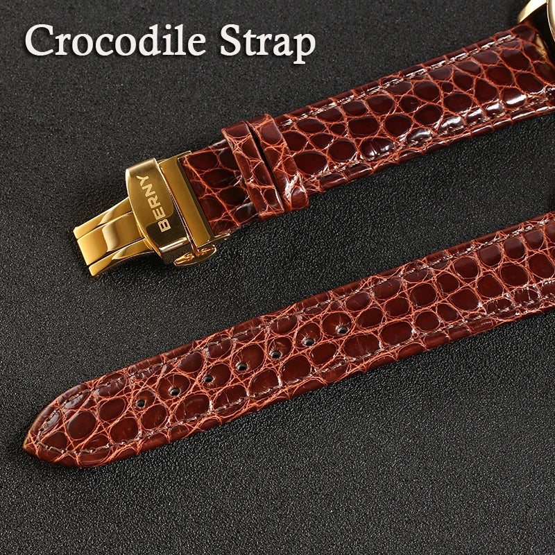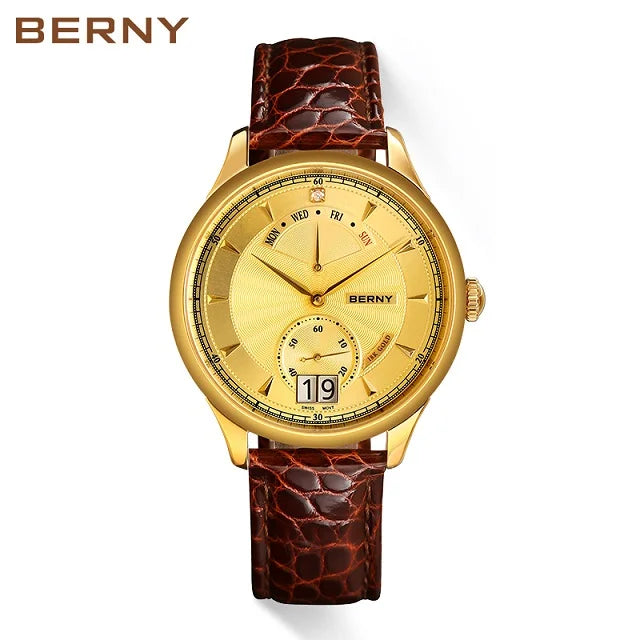 Where night meets nobility. The Valen Lunaire bathes its golden dial in soft lunar shimmer, 18-carat brilliance framed in a deep caramel strap. It embodies composure, confidence, and continuity.