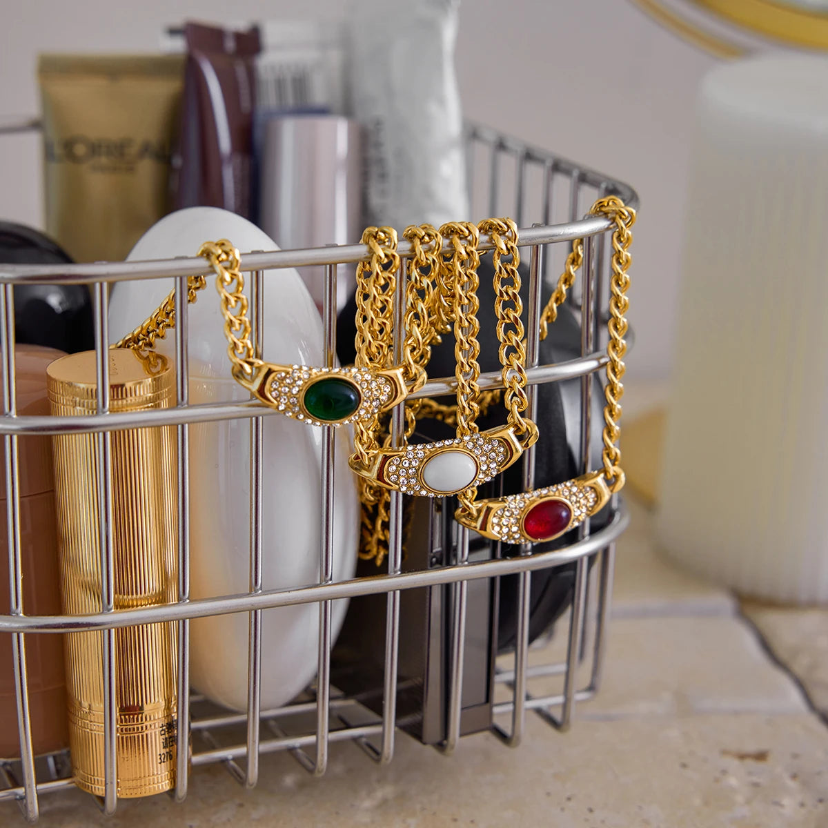 The Valette Layer weaves confidence and grace, a golden trio accented with color and quiet brilliance.